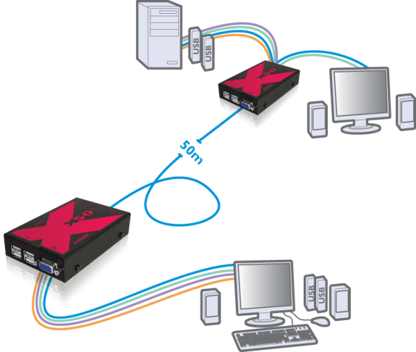 AdderLink X50. Transparent USB & VGA KVMA CATx Extender 50 Mtr