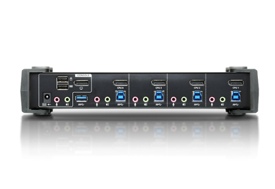 | KVM (Computer) Ports | 4 x USB3.1 Gen1 Type B Female (Blue) 4 x DisplayPort Female (Black) 4 x Mini Stereo Jack Female (Green) 4 x Mini Stereo Jack Female (Pink) |