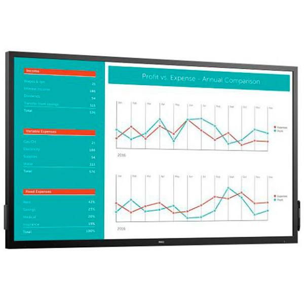 Панель Dell C7017T с диагональю экрана 69.5″, разрешением 1920×1080 (Full HD) и типом матрицы VA. Модель оснащена встроенными динамиками и USB-концентратором, время отклика составляет 6мс, яркость 350кд/м , контрастность 4000:1. Панель содержит видеопорты: 1xD-Sub, 3xHDMI и 1xDisplayPort.