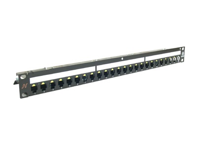 Коммутационная панель Nexans LANsense, 19″, 1HU, 24x snap-in, универсальная, угловая, цвет: чёрный